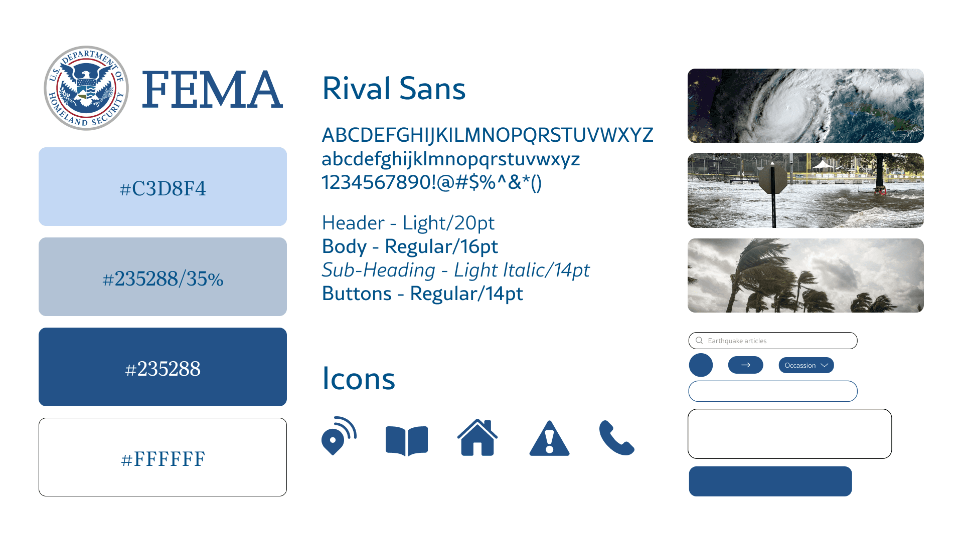 Picking a current application that is widely known and transforming it to create a more accessible and aesthetic design. FEMA is a federal agency that helps Americans prepare for, respond to, and recover from disasters, so the application redesign needed to resonate with all types of audiences.